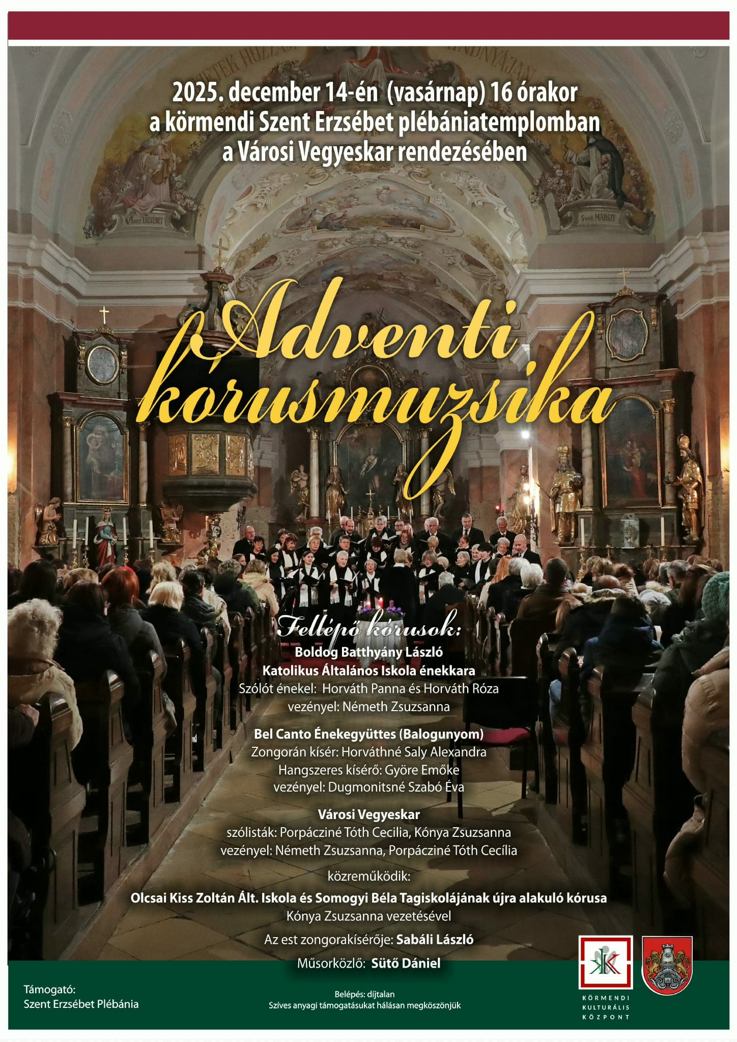 Fekete Szabolcs Benedek a Caritas in Veritate Bizottság új elnökeA Magyar Katolikus Püspöki Konferencia (MKPK) 2025. december 2–3-án tartotta téli rendes ülését. A püspökök testülete a szokásoknak megfelelően a Magyar Katolikus Püspöki Konferencia budapesti székházában gyűlt össze. Az ülésen részt vett Michael W. Banach érsek, Magyarország apostoli nunciusa is. A püspökök testülete megköszönte Székely János püspöknek, a konferencia elnökének sokéves szolgálatát a Caritas in Veritate Bizottság, valamint a Keresztény–Zsidó Tanács elnöki pozíciójában. Az MKPK tagjainak döntése értelmében a Caritas in Veritate Bizottság új elnöke Fekete Szabolcs Benedek püspök, míg a Keresztény–Zsidó Tanács új tagja Martos Levente Balázs püspök lesz. A Magyar Kurír teljes cikkét ide kattintva érhetik el. "Ébredj, ember, mély álmodból!" – Megkezdődött az adventi készület időszakaJámbori Tamás további képeit Körmend város honlapjának képgalériájában ide kattintva tekinthetik meg. A Székesfehérvári Egyházmegye adventi füzeteA Székesfehérvári Egyházmegye idén is megjelentette adventi füzetét, amit egyre többen keresnek, hogy adventi lelki útjuk során magukkal vigyék gondolatait, imáit, képeit. Az egyházmegye azt szeretné, hogy mindenkihez eljuthasson a kis füzet, ezért a honlapjukon is elérhetővé tették, ide kattintva tölthetik le Pdf formátumban. Ferences adventi lelki készületElkészült a ferencesek idei adventi naptára, mely napi útmutatóul szolgálhat az elmélkedésben és a jócselekedetek gyakorlásában. Idei mottójukat dr. Bagdy Emőke pszichológustól vették: "Az advent lehetőséget ad arra, hogy kilépjünk a pénzközpontú világunkból és helyette a magasabbrendű értékekre szegezzük a tekintetünket. Az ünnep reményt ad a szívünkbe, hogy van megváltás, hogy kezdhetünk újat, és hogy a szeretet köré tudjuk építeni az életünket." Az elmélkedések idei gondolatait a pápák, a szentek és a liturgia gondolataiból válogatták az internetről. Az adventi naptárat a Pesti Ferencesek honlapjáról ide kattintva érhetik el és tölthetik le Pdf formátumban. Gyönyörű lett a templomunk!Ismét birtokba vettük a plébániatemplomot. November 23-ától újra a szokásos rend szerint lesznek a szentmisék és szertartások a plébániatemplomban. Hálás köszönet mindazoknak, aki a három napban részt vettek a templom takarításában, berendezésében. Jutalmazza az Úr munkájukat és fáradozásukat, feláldozott idejüket sokszoros kegyelmével! Legyenek áldottak, akik az Úr házának ékességén dolgoztak! A plébániánkkal kapcsolatos további új képeinket Google Drive galériánkban ide kattintva tekinthetik meg. Plébániatemplomunk előterének Batthyány-képeAz első képünkön látható eredeti festményt Alois Schornböck készítette 1908-ban. A kép Dr. gróf Batthyány Lászlót orvosi eszközei körében ábrázolja köpcsényi kórházában. Schornböck (1863-1926) osztrák festő, 1879 és 1884 között a bécsi Szépművészeti Akadémián tanult festészetet és a monarchia utolsó éveiben Bécs egyik legkeresettebb portréfestője volt. A középső képünkön, mely a Magyar Nemzeti Levéltár anyagából származik, Dr. gróf Batthyány László a festmény fotóját saját kézírásával ellátott köpcsényi kórházi emlékképként használta fel. 1993-ban Bukits Ernő festőművész festette újra Schornböck képét, ez látható most plébániatemplomunk előterében. Bukits Ernő néhány grafikáját dr. Gyürki László 70. születésnapjára készített "Mindent az Evangéliumért" című emlékkönyvben is megtekinthetik. Biblia egy év alatt podcast Fábry Kornél atyávalA világ legnépszerűbb katolikus podcastja hamarosan magyar nyelven is elérhető lesz. A Biblia egy év alatt 2026. január 1-jén indul a Zarándok.ma magazin felületén, magyar nyelven, Fábry Kornél püspök atya vezetésével. A podcast célja, hogy bárki – életállapottól, életkortól, elfoglaltságtól függetlenül – végigolvashassa és meghallgathassa a teljes Szentírást 365 nap alatt, napi 20–25 perces epizódokban. Fábry püspök atya minden adásban a napi szentírási szakaszok felolvasása után elmélkedéssel és vezetett imával segíti a hallgatót abban, hogy Isten élő szavát a saját életében is felismerje.