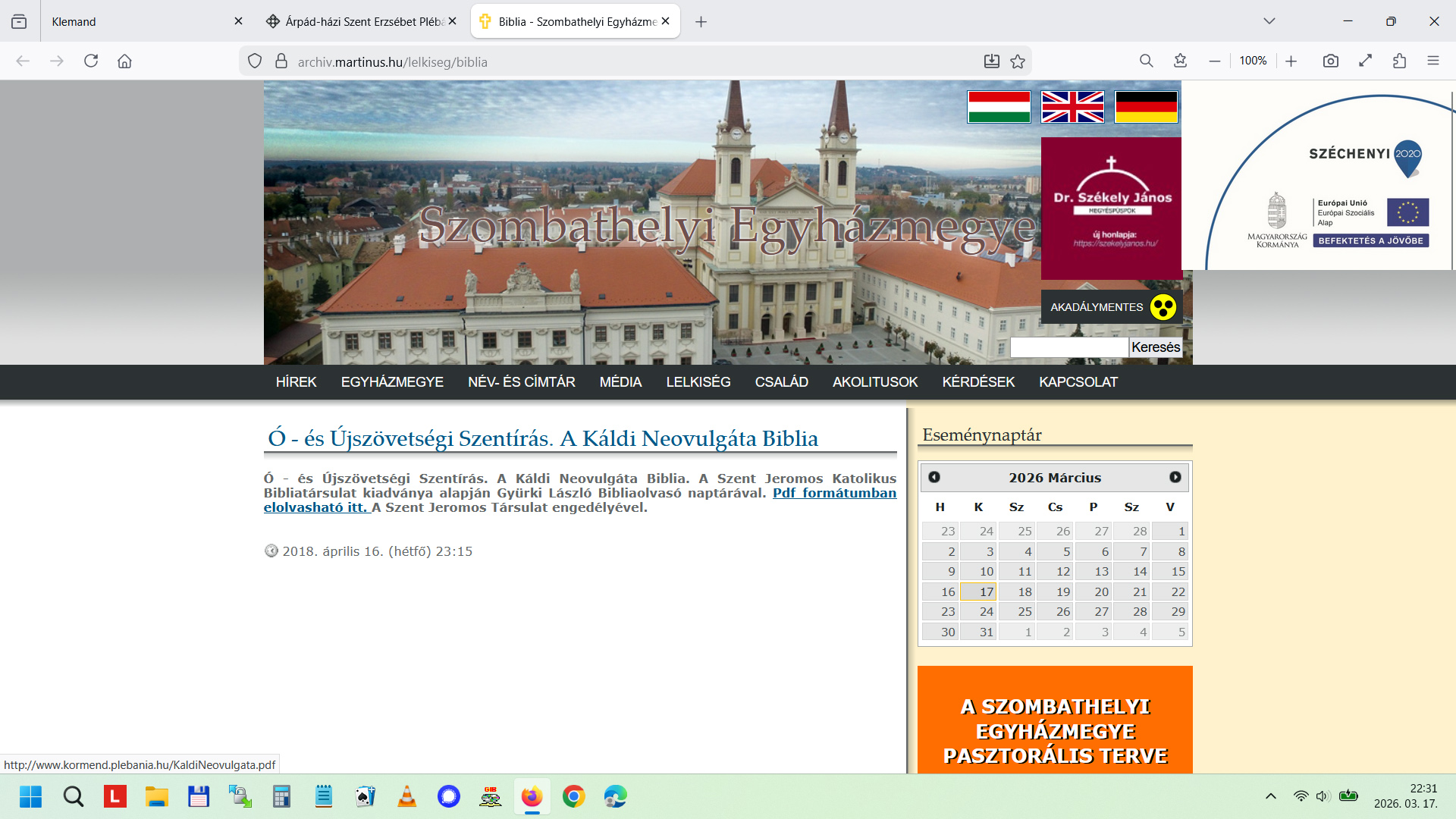 - Katolikus magyar nyelvű Bibliák (Pesti Gábor, Káldi és SZIT Bibliák, Pdf-ek)