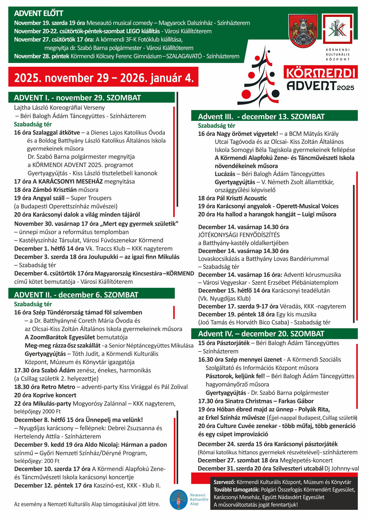"Nem azért jöttem, hogy nekem szolgáljanak..." – Dr. Rátkai László előadása2025. október 20-án a Batthyány Örökségközpont Színház aulájában a KÉSZ Körmendi Csoport szervezésében előadást tartott dr. Rátkai László az egyháztörténelem tudományok professzora, melynek címe: Jézus mondja: "Nem azért jöttem, hogy nekem szolgáljanak...". Az aula csordultig megtelt érdeklődőkkel. Professzor úr az előadásának során – tekintettel október hónapra, azaz a Szűzanya hónapjára – először a jáki templom énekkarát hallgathattuk meg. Az "Ave Regina" négy szólamú éneke hangzott fel, gyönyörűségesen. Az előadás során többször is felcsendültek a jáki énekkar Szűzanyáról szóló dalai és közös éneklésre is sor került, az előadó testvérétől, dr. Rátkai Ferenctől származó egyházi énekek közül. Hallhattunk evangéliumi részletet, melyben János és Jakab apostolok édesanyja a fiaival együtt Jézushoz járultak, azzal a kéréssel, hogy az ő két fia az Úr országában mellette ülhessen. Az édesanya, mint gyermekei legjobb szponzora, az ő felemelkedésüket próbálta szorgalmazni. Azonban az Úr Jézus válasza kitérő, ami végül is az evangéliumi részlet utolsó sora: "Az Emberfia sem azért jött, hogy neki szolgáljanak, hanem , hogy ő szolgáljon másoknak, és odaadja az életét váltságul sokakért." (Mt 20,28) Szigeti Lajosné teljes tudósítását a Szombathelyi Egyházmegye honlapján ide kattintva olvashatják el. Elkészültek a 2026-os falinaptárainkKözeleg az ősz, ilyenkor szoktak elkészülni a jövő évi naptárak. Én is elkezdtem nézegetni, válogatni az idei fotóimat. Két olyan sorozatot is találtam, amit rögtön naptárként képzeltem el. Az egyik képsorozat Sopronbánfalván a Szentek lépcsőjének szobrai, a másik pedig Majkon a templomtorony égig érő létrájához tartozó táblasorozat az alázatosság 12 fokáról. Igaz, ez kifejezetten a szerzetesek számára készült, de mindannyian okulhatunk belőle. Akár egy éves program is lehet képletesen feljutni a létra tetejére. Az Igenaptárat és a névnapos falinaptárat Szűz Mária tiszteletére állítottam össze. Ezek tegnap Búcsúszentlászlón, a Kisboldogasszony-búcsún és Celldömölkön váltak teljessé, köszönet Németh Zoltán plébános atyának. A Névnaptár plusz Bodajk és Máriapócs különösen gazdag szakrális látnivalóiból nyújt egy kis ízelítőt. Az elkészült új naptárakat plébániánk Google Drive tárhelyéről ide kattintva érhetik el és tölthetik le. A további és régebbi naptárainkat ia ezentúl egy helyen ide kattintva találják meg. 2025-ös képes falinaptáraink